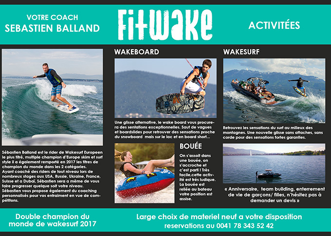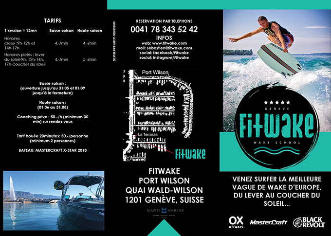 Création d'un flyer trifold (3 parties) pour un club de wake/wakesurf à Genève.