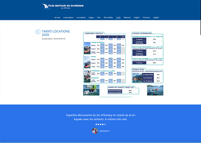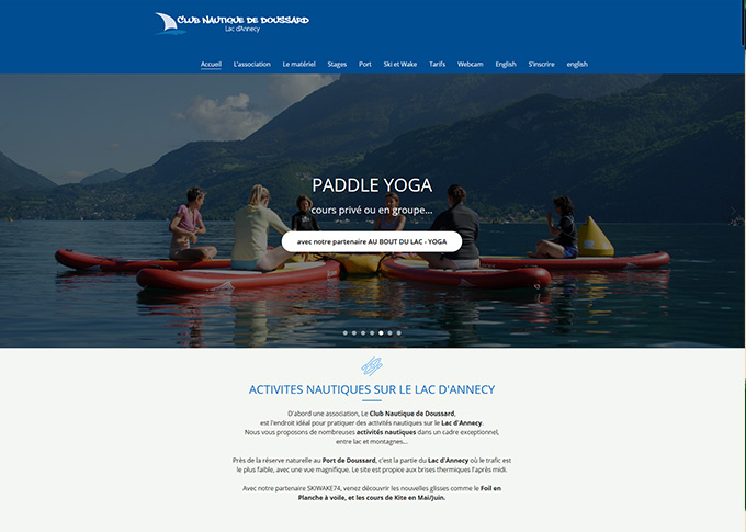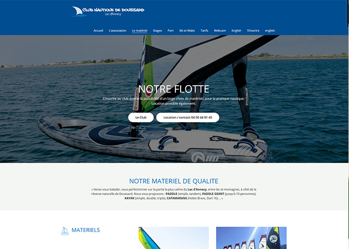 Création d'un site internet pour le Club nautique de Doussard. Création template graphique, banners. Mise en place d'un systeme de réservation online pour le port à sec de Doussard au bord du lac d'Annecy. Développement sur plateforme CMS Wordpress. Site responsive.